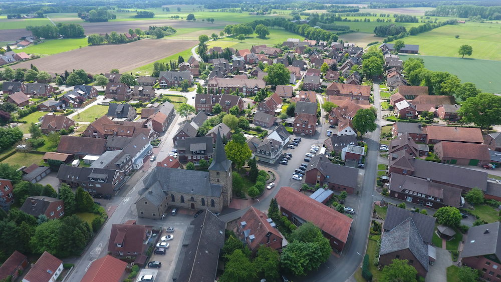 Die Siedlung wuchs rasch, bereits 1489 besaß Rhade als selbstständige Pfarrgemeinde eine eigene Kapelle, später eine eigene Kirche. Ein Schutzturm mit massiven Seitenwänden diente der Bevölkerung als Zufluchtsort, als 1598 plündernde Soldaten eines spanischen Heeres über Rhade herfielen. Wenngleich die Bevölkerungszahl nach zahlreichen Kriegen und Plünderungen immer wieder dezimiert wurde, entwickelte sich der Ort zu einer Gemeinde, die zwischen 1839 und 1841 eine dreischiffige Hallenkirche anstelle der alten Kapelle bauen konnte.